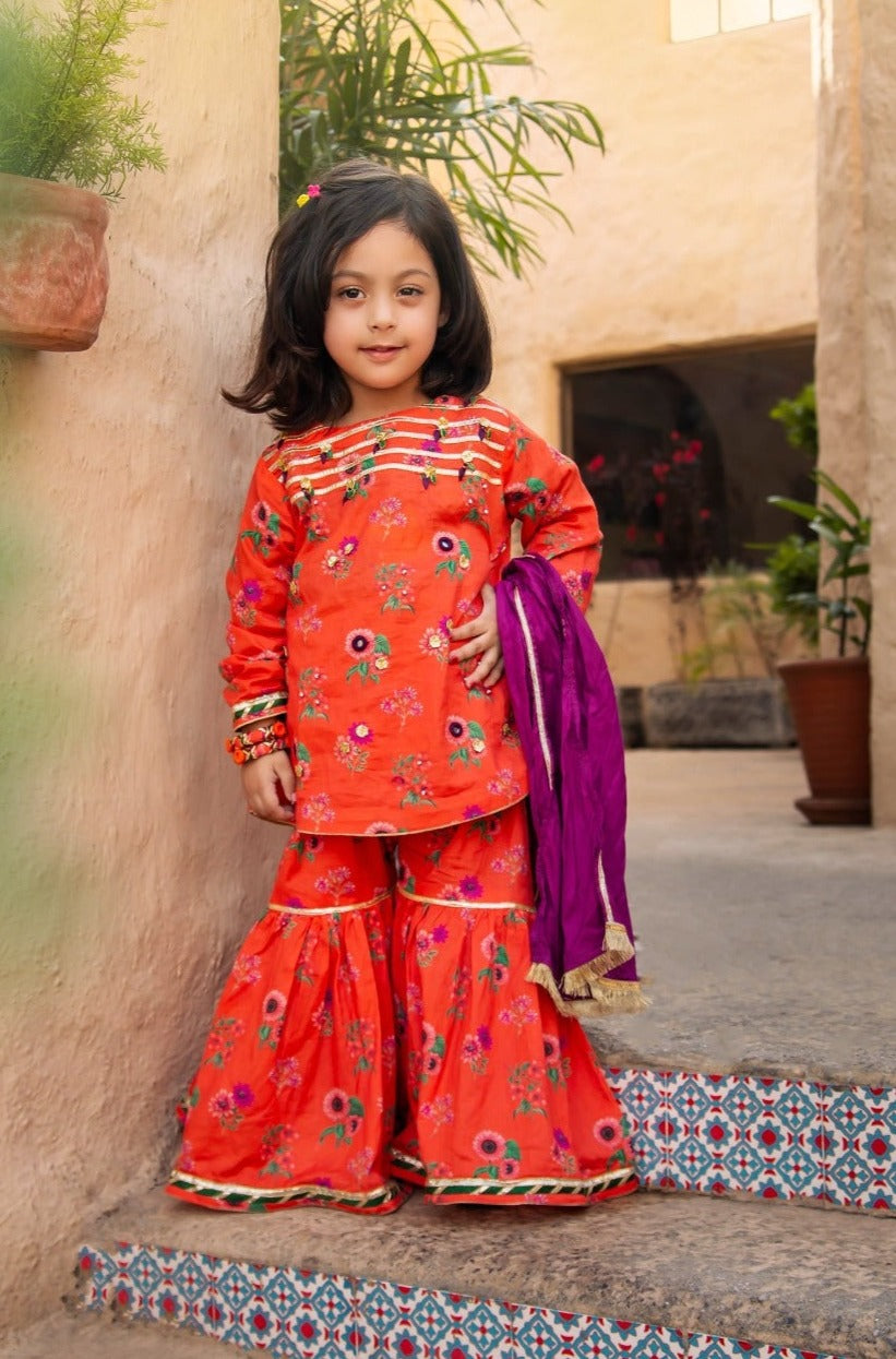 RUST GHARARA: Frock for Girls