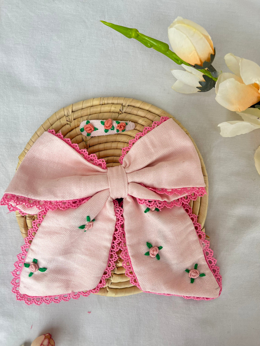 Pink Embroidered Bow