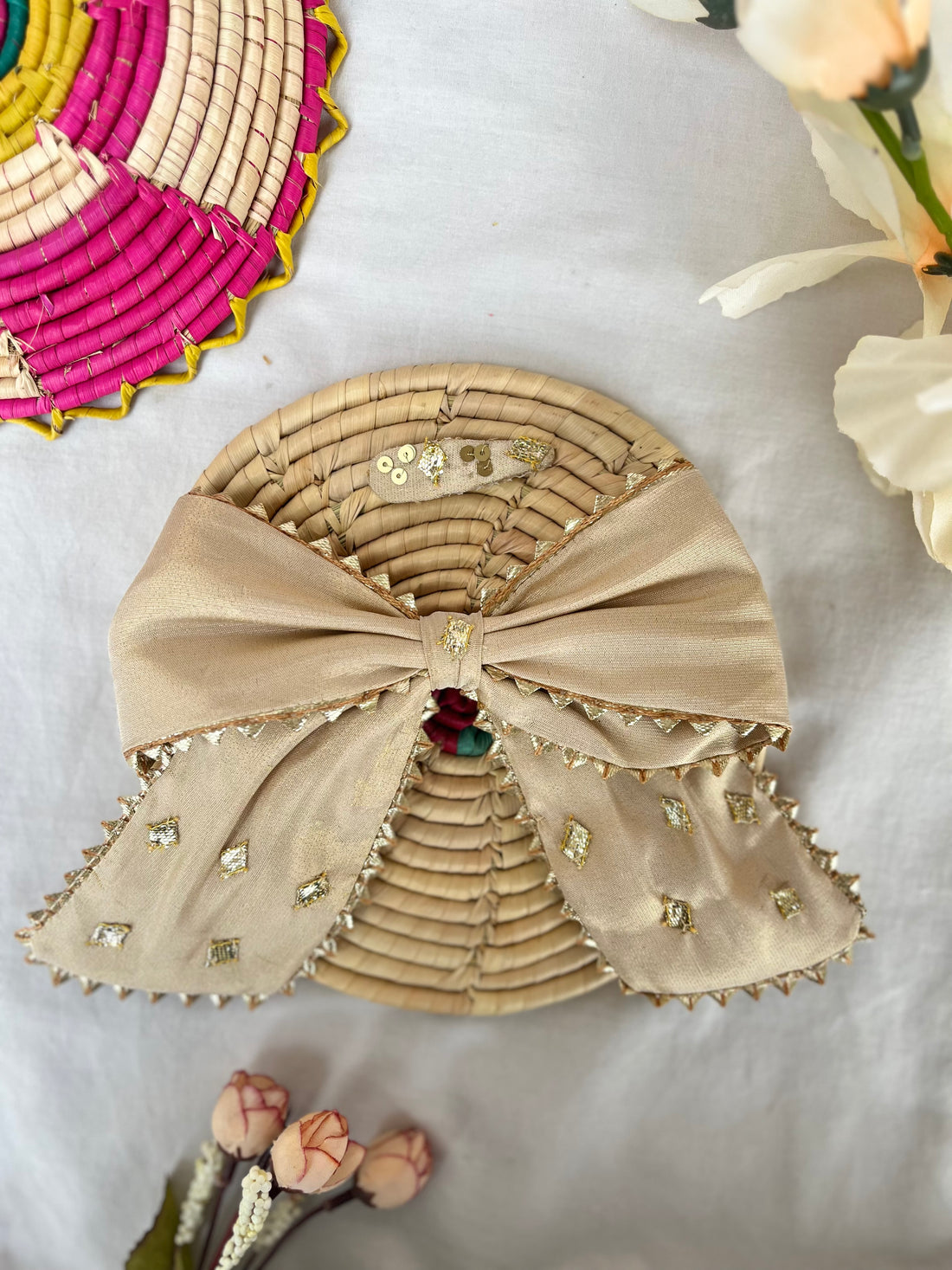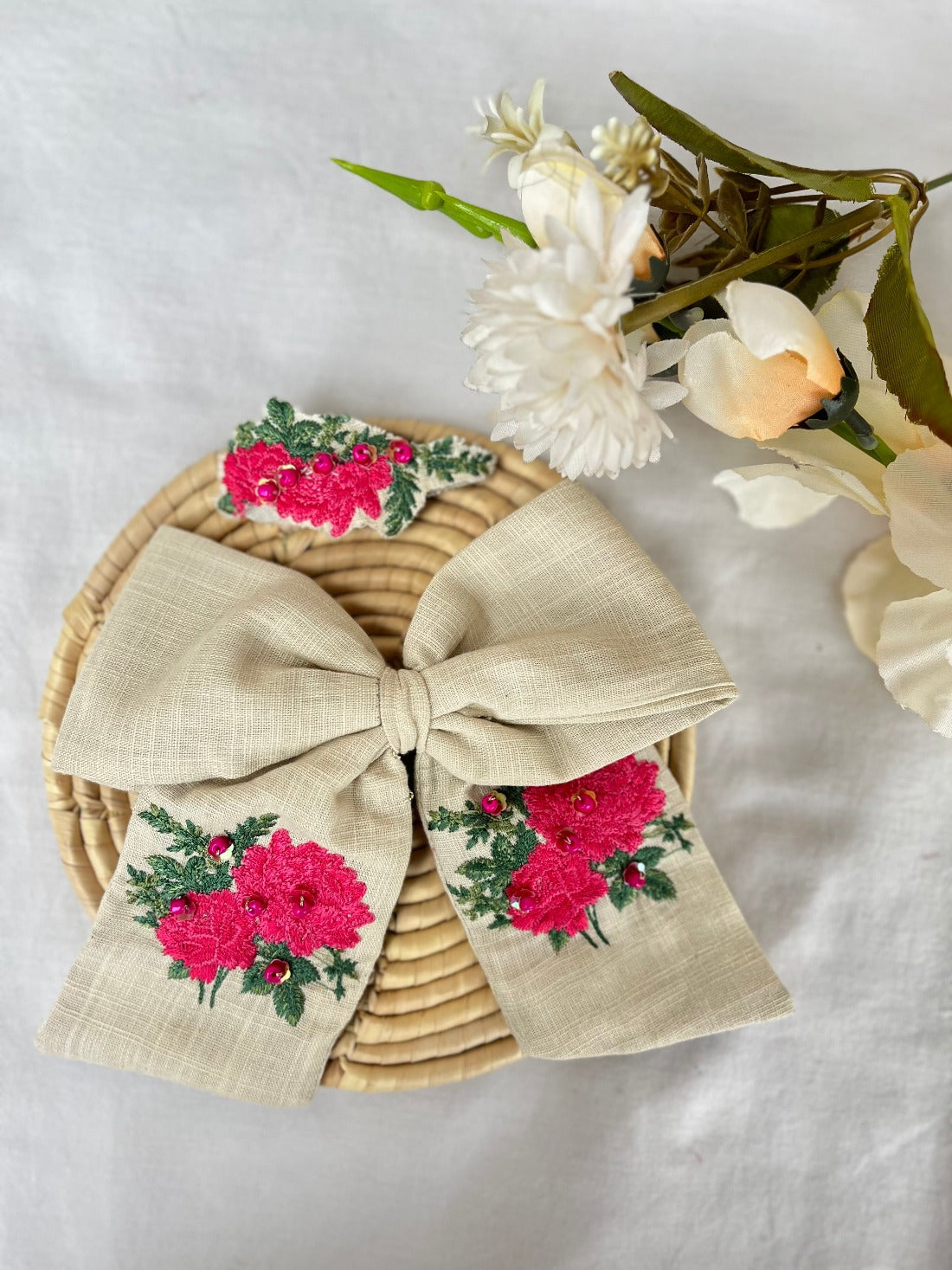 Beige Floral Bow