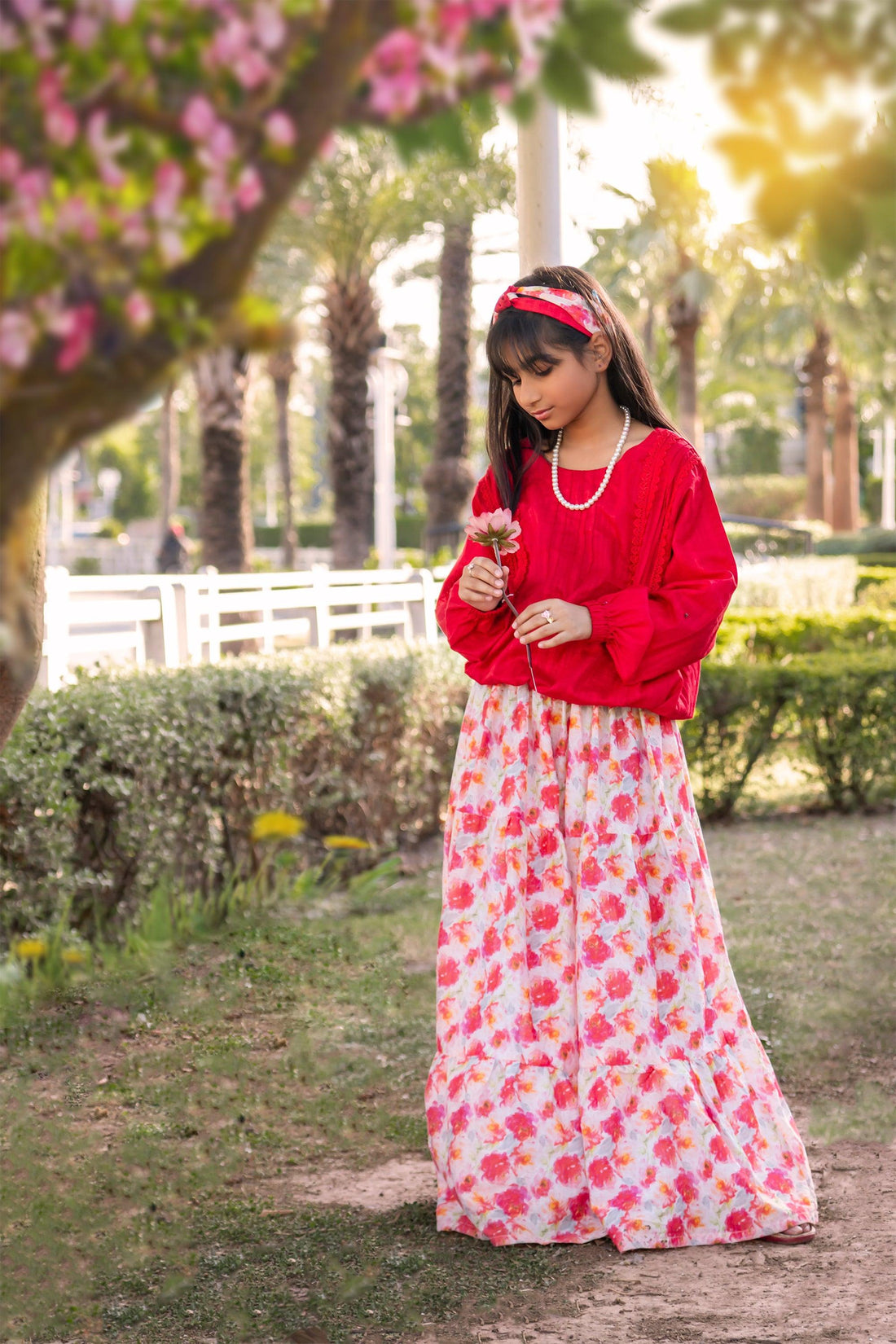 Gulabo Girl's fashion Maxi Cotton cultural Orange