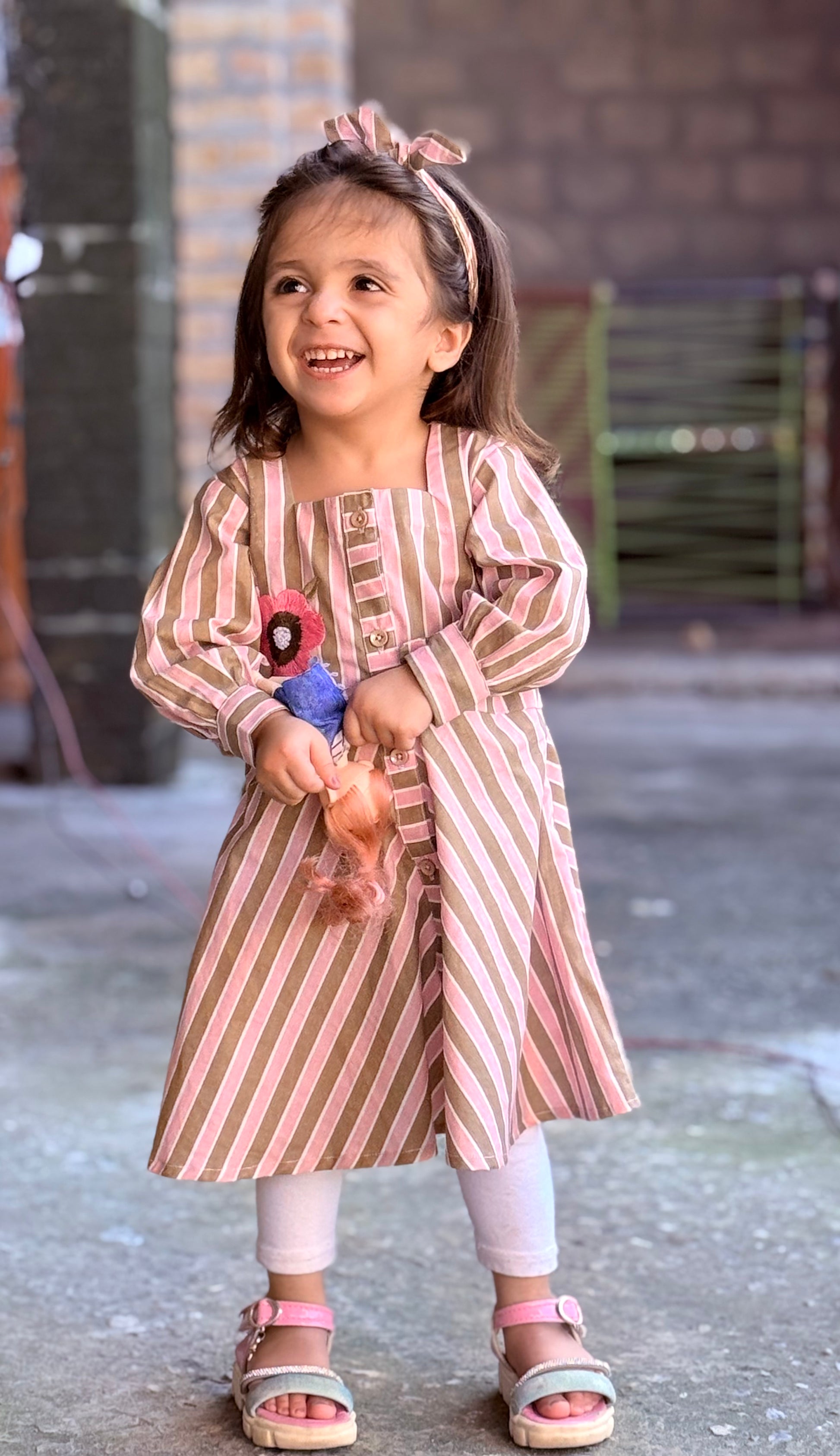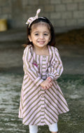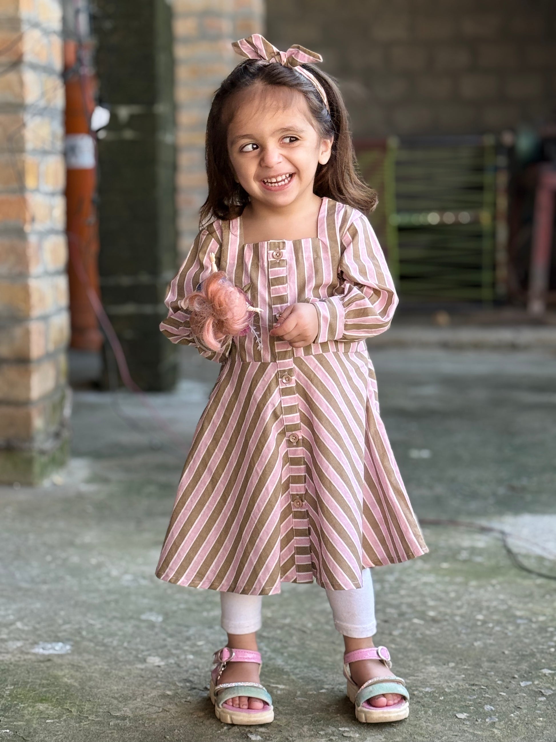 A dreamy blend of soft pink and elegant grey, this umbrella frock is designed to make little ones shine. Crafted from breathable cotton, its flowy umbrella cut gives a graceful twirl with every step. The frock is paired with a matching headband for a picture-perfect look—ideal for birthdays, family gatherings, or festive wear.