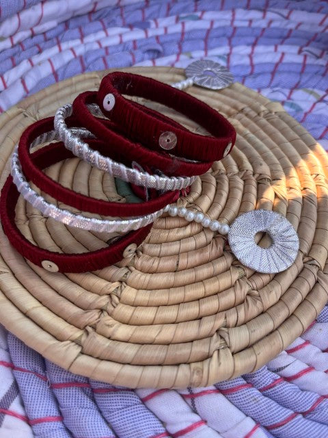 Gotta bangles sets is available from new born till mommy size. With 2 karas 4 bangles with beautiful handcrafted mirrors and gotta tilla work. Beautifully handcrafted on metal bangles wrappwd with clothes and tilla