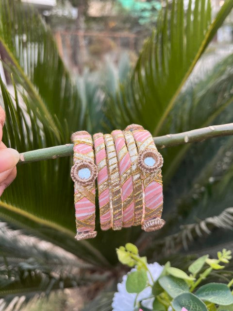 Gotta bangles sets is available from new born till mommy size. With 2 karas 4 bangles with beautiful handcrafted mirrors and gotta tilla work. Beautifully handcrafted on metal bangles wrappwd with clothes and tilla
