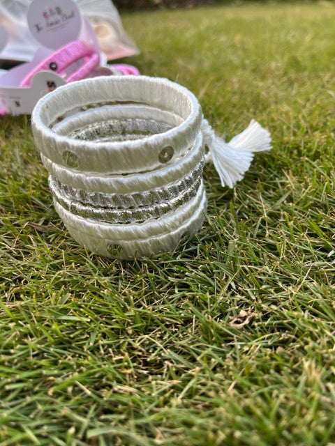 Gotta bangles sets is available from new born till mommy size. With 2 karas 4 bangles with beautiful handcrafted mirrors and gotta tilla work. Beautifully handcrafted on metal bangles wrappwd with clothes and tilla