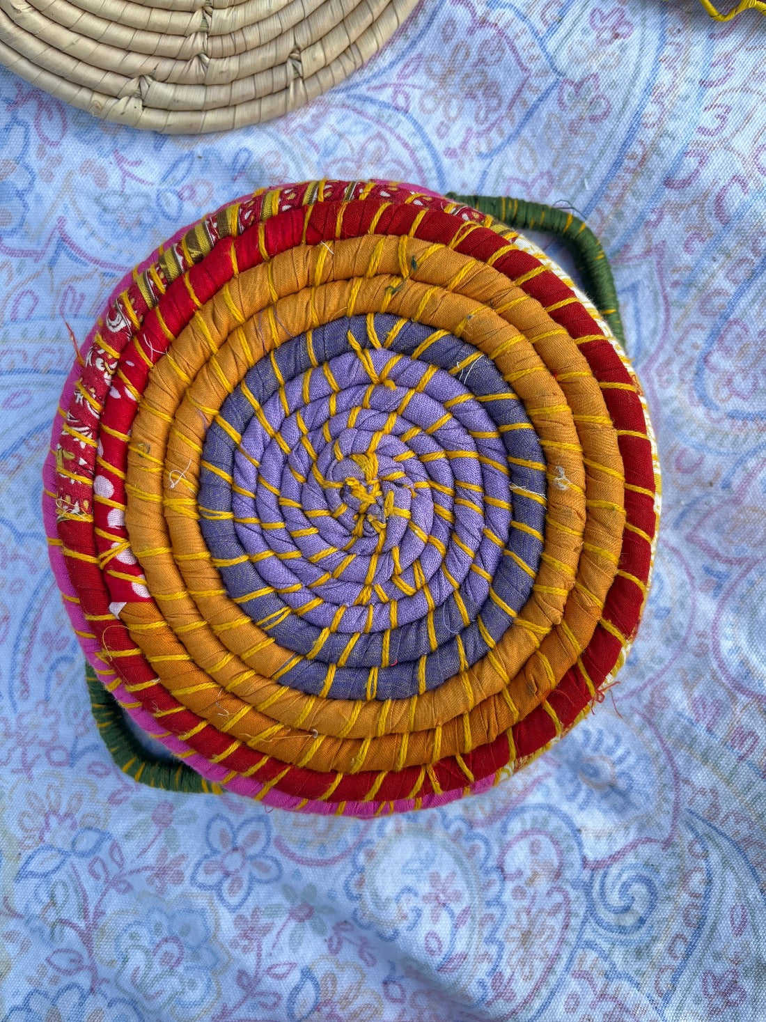Introducing our lovely black and pink multicolored basket handmade with scraps. Elegantly designed multiple colors of scraps this basket is perfect for any gift!