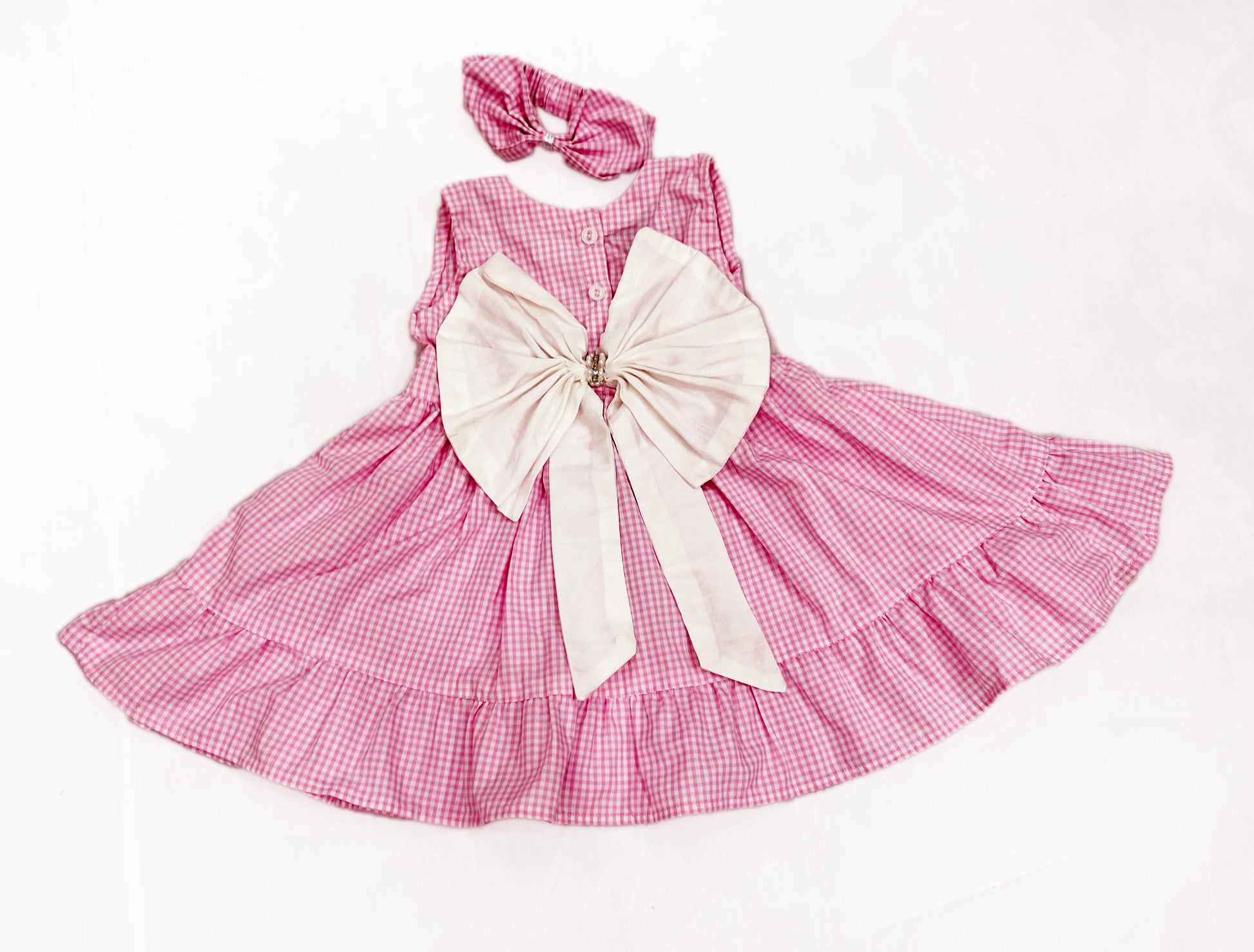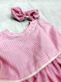 A lovely check printed frock rendered in a beautiful cherry pink shade. Comes with a matching pink headband