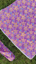 Description: Displaying grace and simplicity is this absolutely lovely kurta shalwar set. With the base color as lavender, flowers printed all over adorn both the shirt and trouser. Decorated with simple lace that subtly accentuates the purples of the dress this outfit is perfect for any outdoor event. A breathable lawn makes up both the kurta and trouser, so your baby can play around even during summer and still be as comfortable as ever. On top of this lovely outfit is a matching headband!