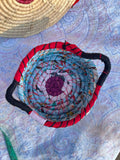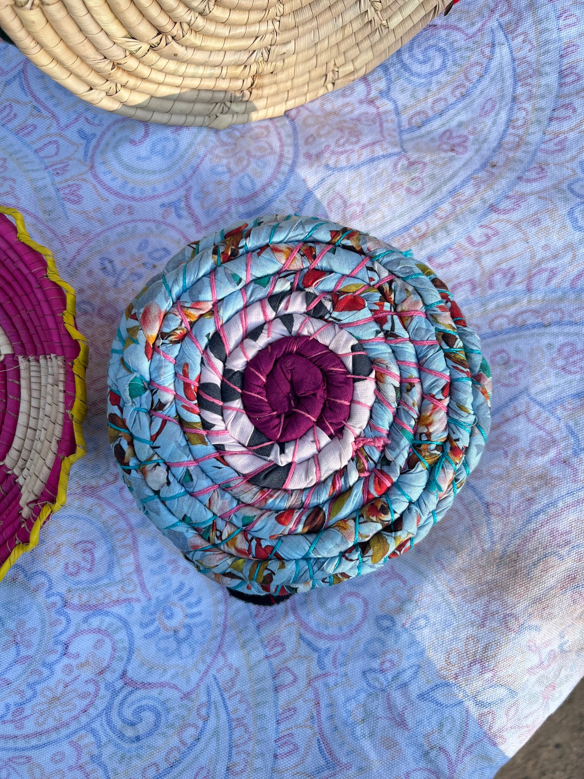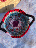 Introducing our lovely light blue basket handmade with scraps. Elegantly designed multiple colors of scraps this basket is perfect for any gift!