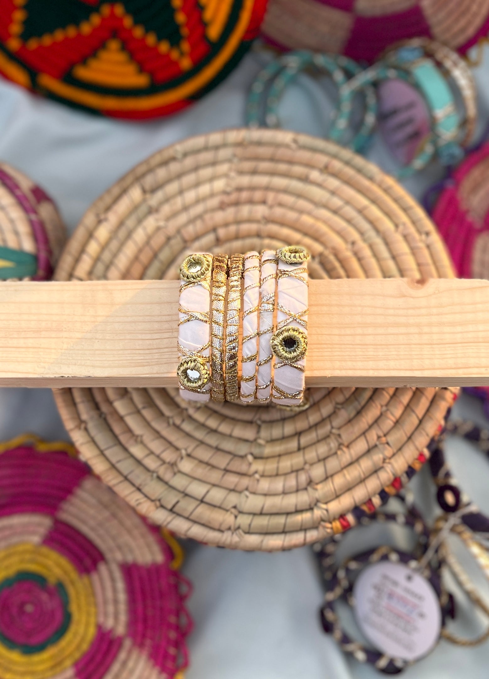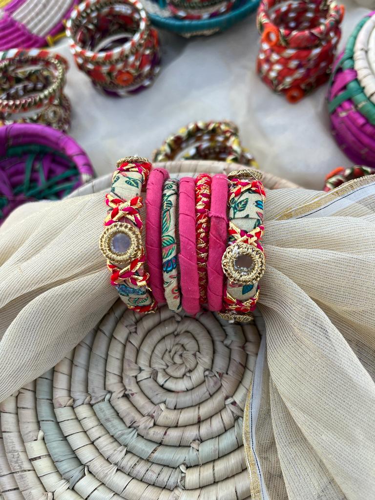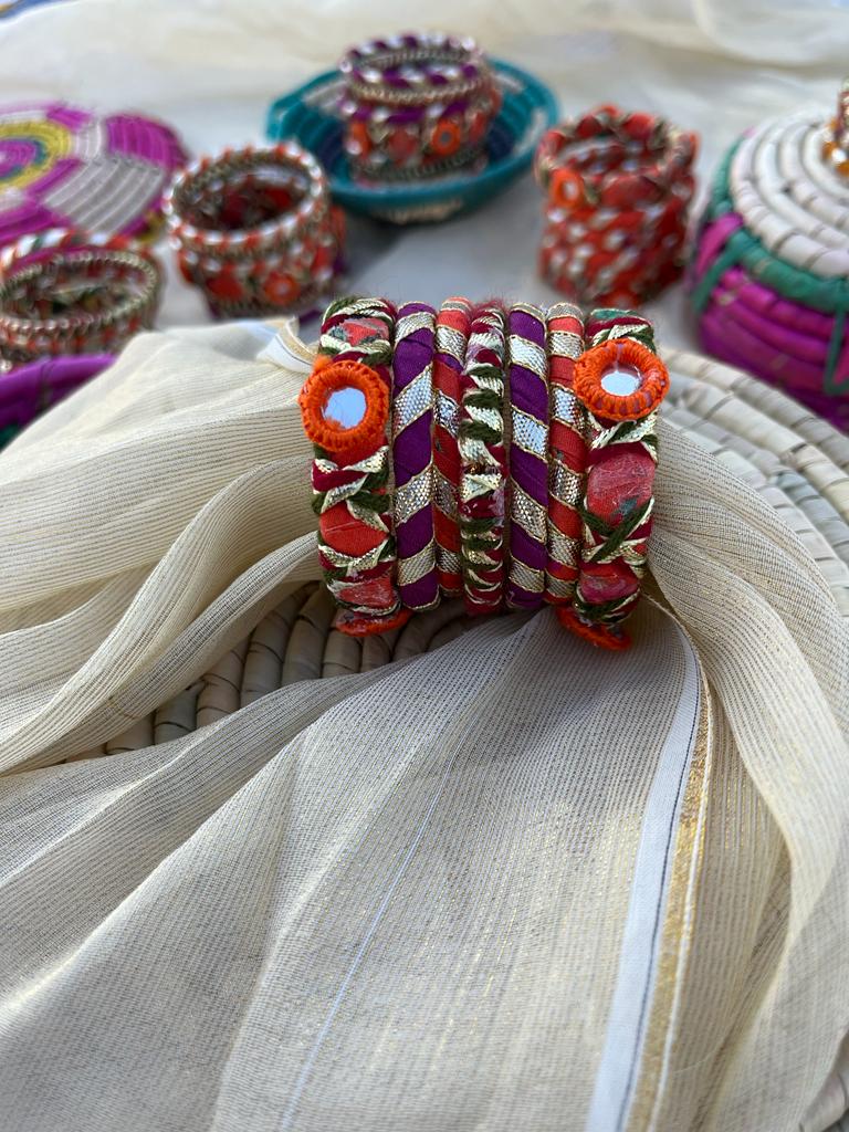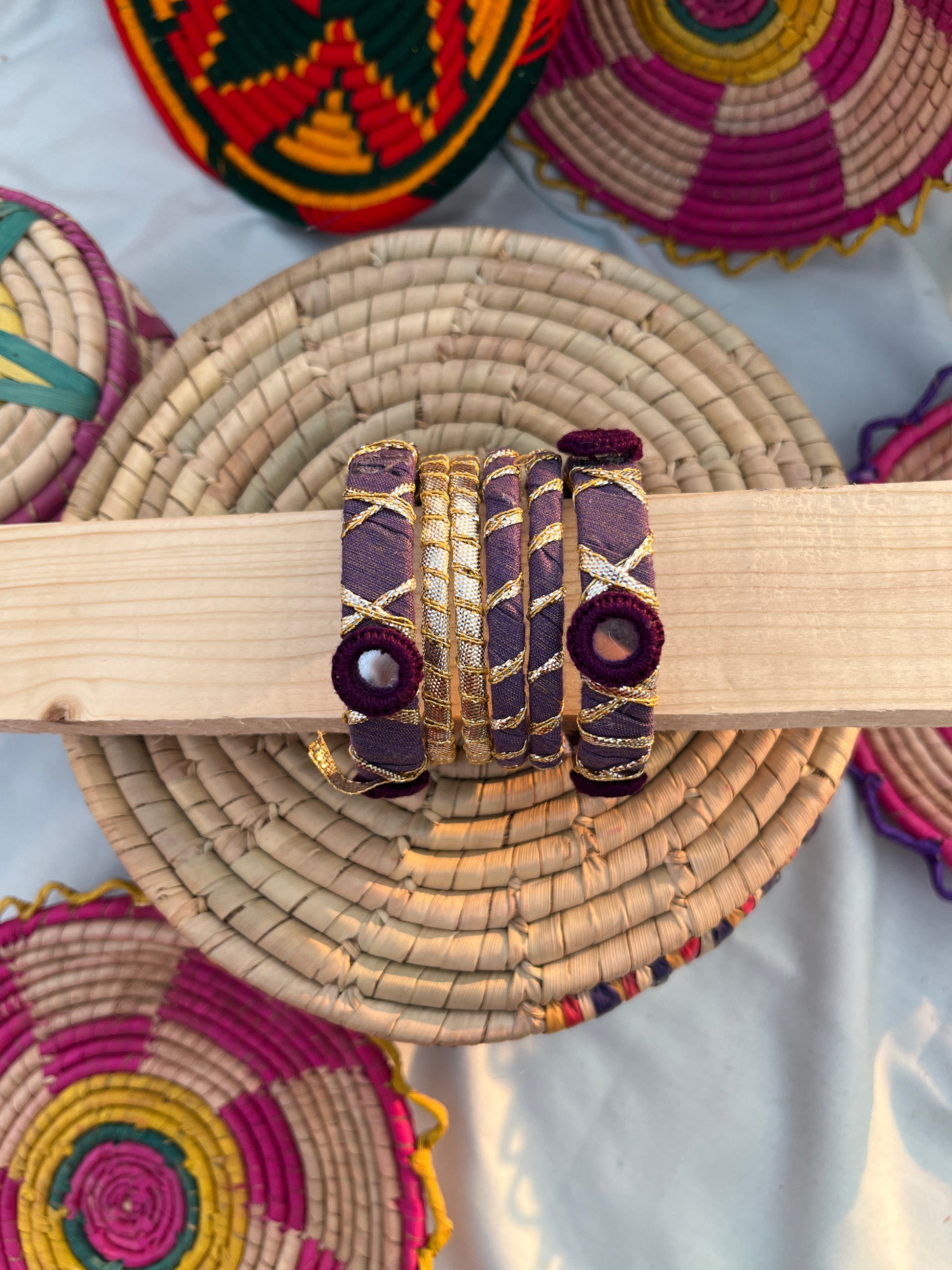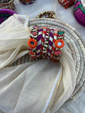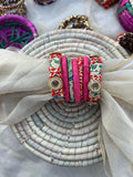 Description: The most lovely bangle sets in 1-2 years size. With karas adorned with beautiful mirrors and the bangles with gorgeous gotta.