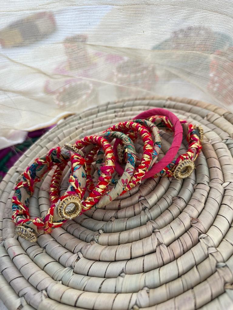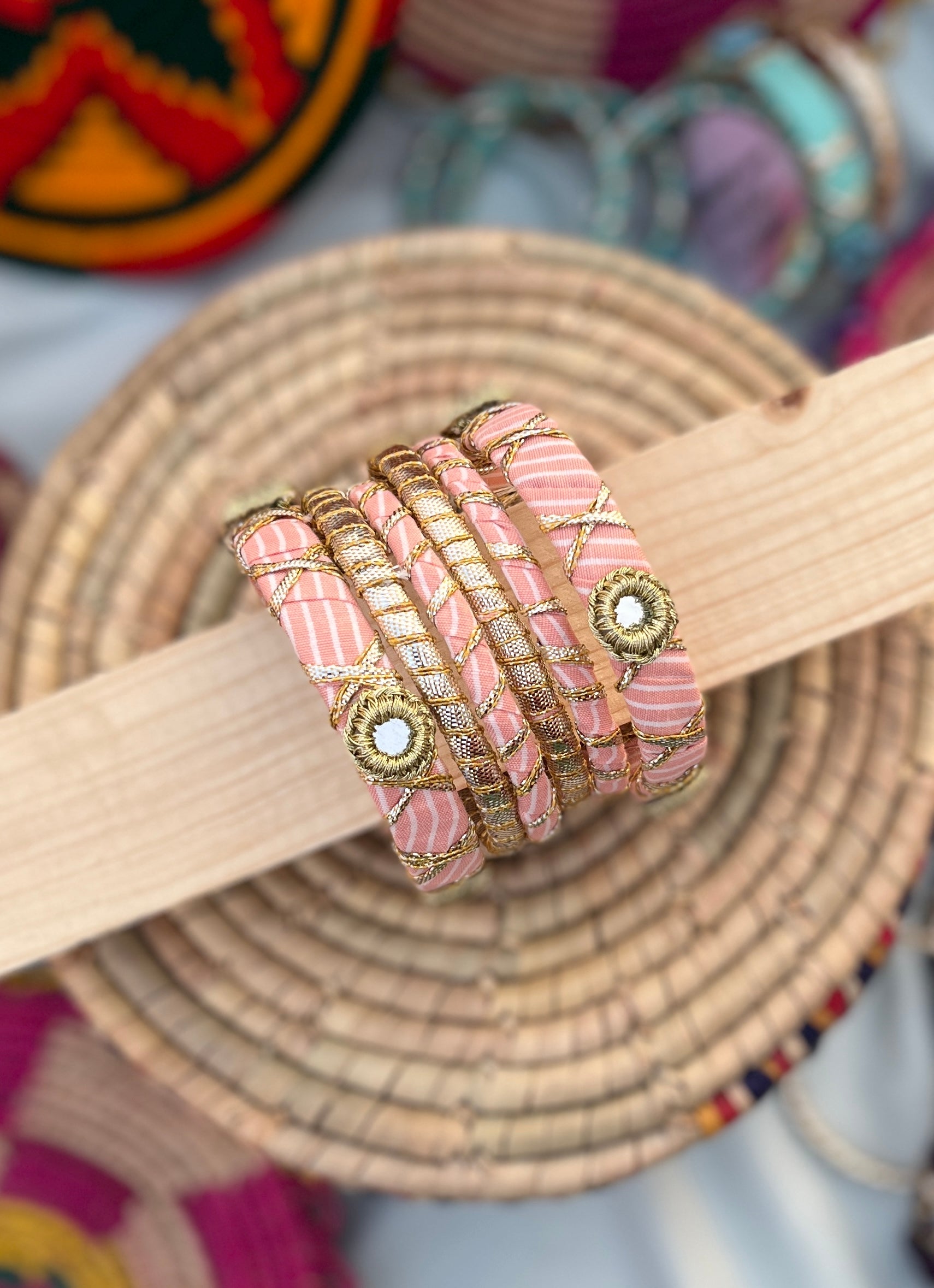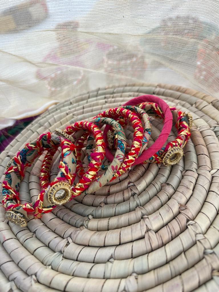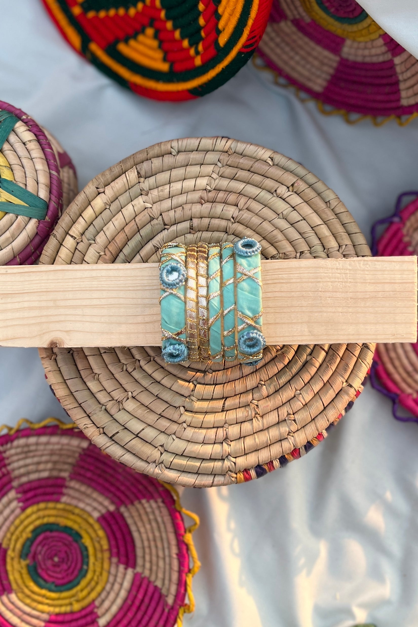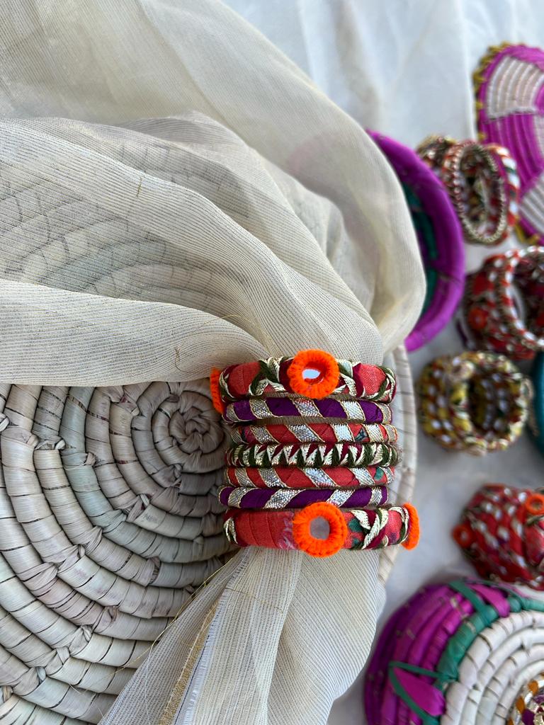 Description: The most lovely bangle sets in 1-2 years size. With karas adorned with beautiful mirrors and the bangles with gorgeous gotta.