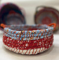 Introducing our lovely red and white basket handmade with scraps. Elegantly designed multiple colors of scraps this basket is perfect for any gift!