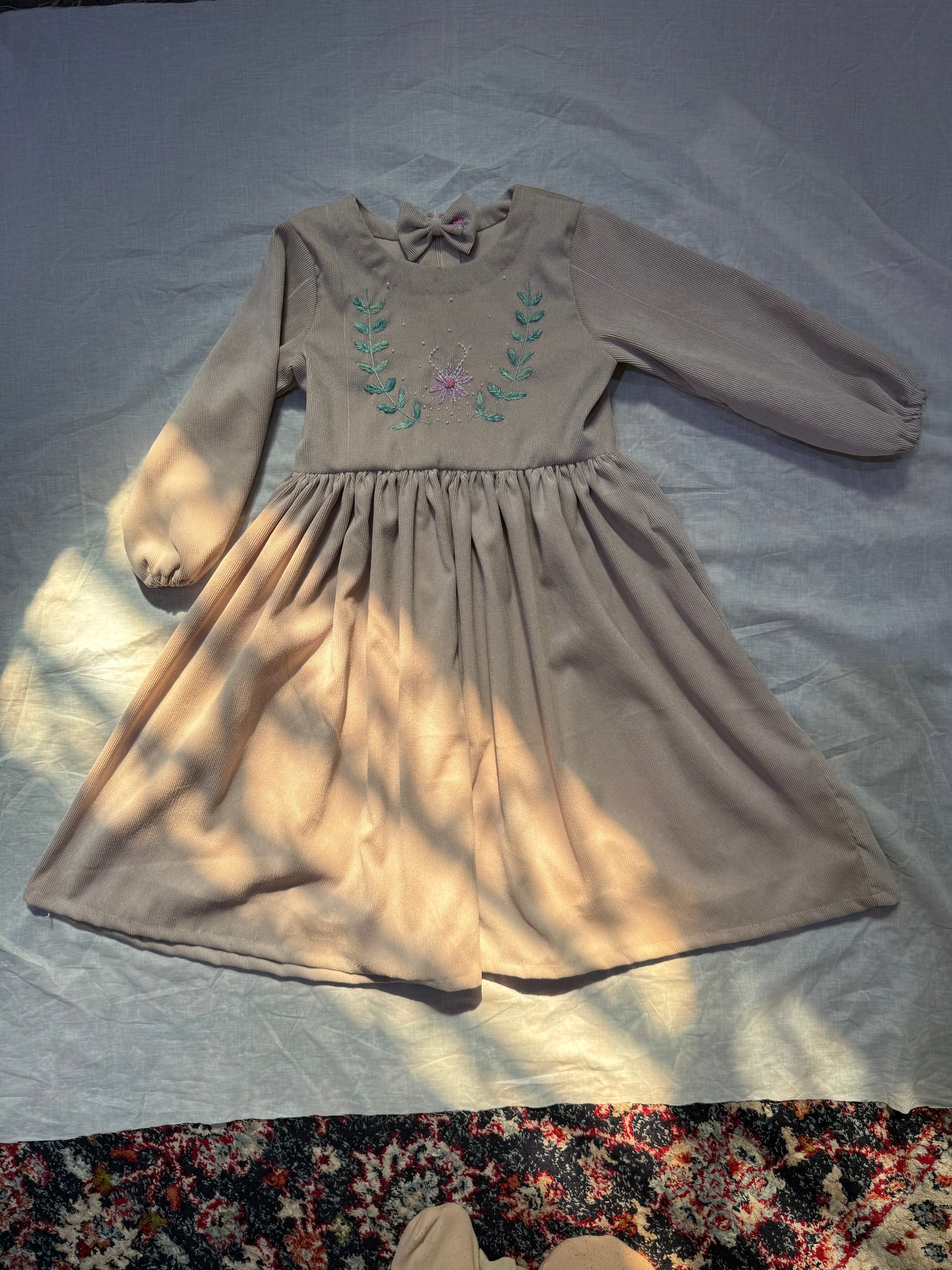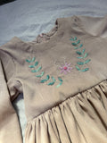 Crafted from premium corduroy fabric in a delicate skin-toned shade, this frock offers warmth, comfort, and timeless elegance. The highlight of the design is the exquisite hand embroidery, thoughtfully placed to add a touch of artisanal charm and sophistication.