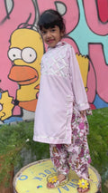 Description: An elegant composition of grace and beauty. Layered over adorable printed purple shalwar is a lilac shirt with gotta work on the front to accentuate the dress. Adorned with meticulously handmade tussels and a printed dupatta to match and complete the look.